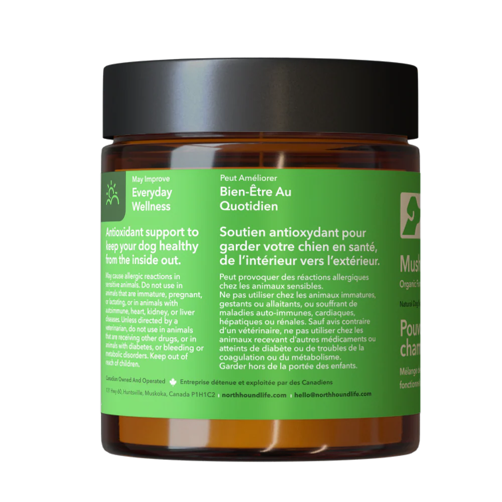 Our Mushroom Power is a combination of five superfood mushrooms your dog may enjoy. Chaga (Inonotus obliquus), Reishi (Ganoderma lucidum), Turkey Tail (Coriolus versicolor), Cordyceps (Cordyceps sinensis), Lion's Mane (Hericium Erinaceus).